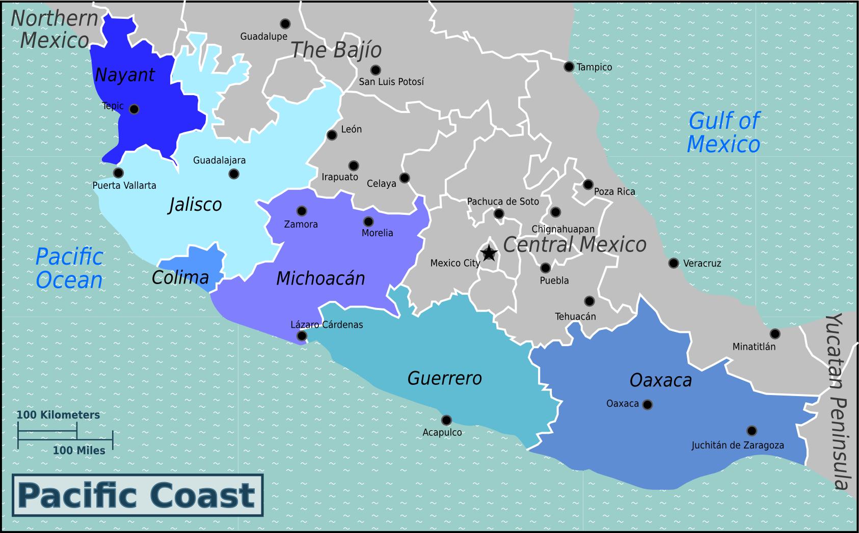 Мексика тихоокеанське узбережжя карта